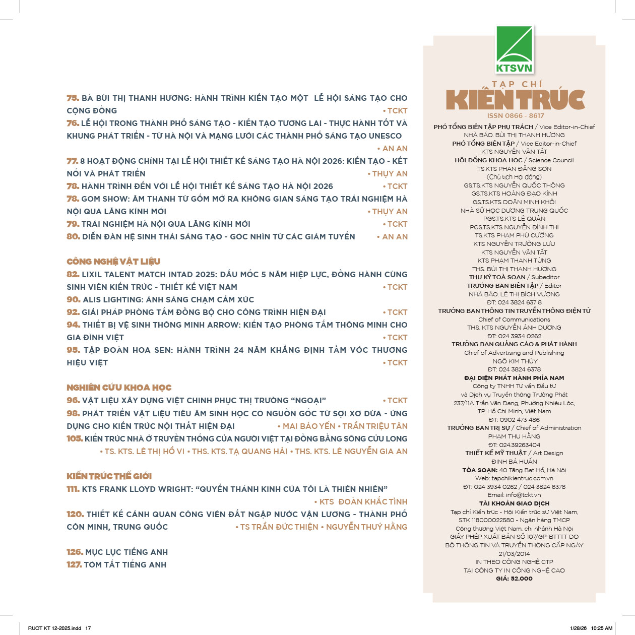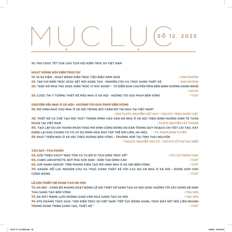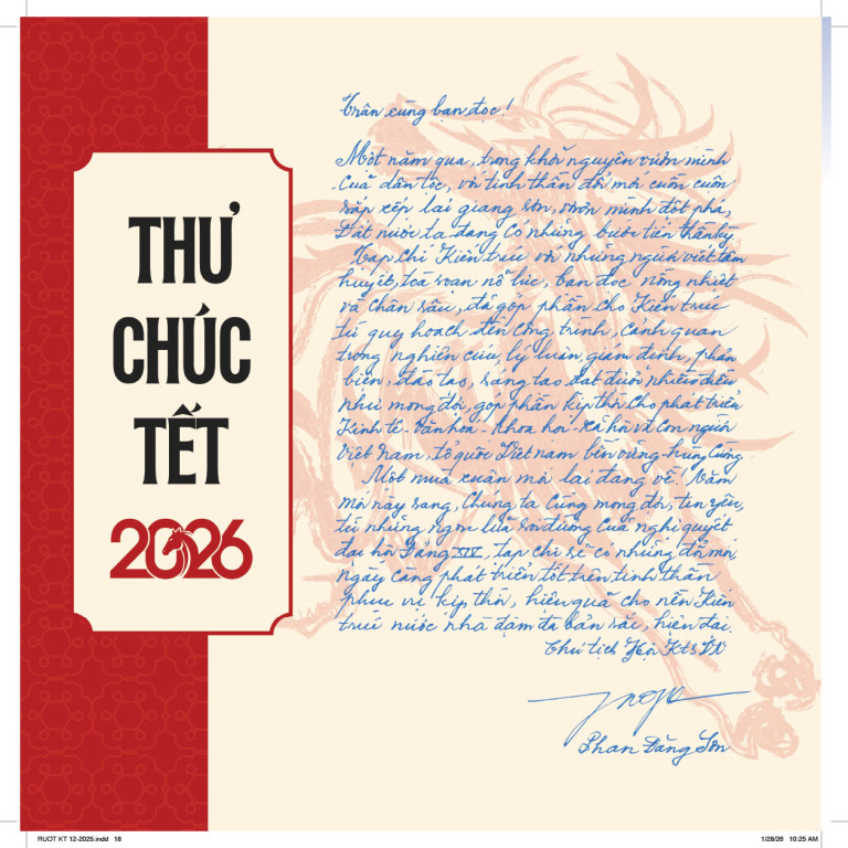 Một mùa xuân mới lại đang về! Năm mới này sang, chúng ta cùng mong đợi, tin yêu, từ những ngọn lửa rọi đường của nghị quyết đại hội Đảng XIV, tạp chí sẽ có những đổi mới ngày càng phát triển tốt trên tinh thần phục vụ kịp thời, hiệu quả cho nền kiến trúc nước nhà đậm đà bản sắc, hiện đại.
