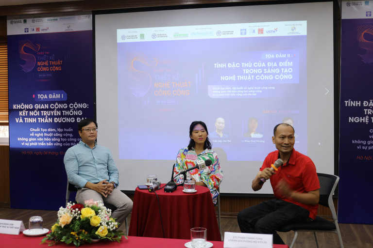 Tiếp nối Chuỗi tọa đàm, tập huấn về “Nghệ thuật công cộng – Không gian văn hóa sáng tạo công cộng vì sự phát triển bền vững của Hà Nội”, sáng ngày 5/10/2022, tại Trụ sở Hội KTS Việt Nam, Sở Văn hoá Thể thao Hà Nội, UN-Habitat phối hợp cùng Tạp chí Kiến trúc – Hội KTS Việt Nam tiếp tục tổ chức Tọa đàm với chủ đề Tính đặc thù của địa điểm trong sáng tạo nghệ thuật công cộng.