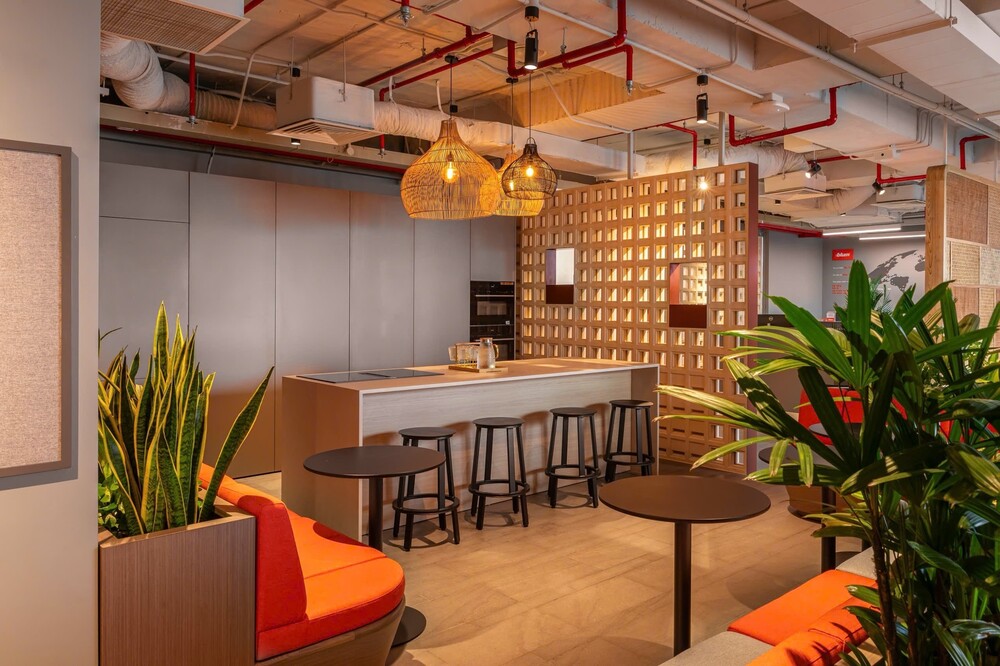 Toàn bộ không gian Blum Experience Center được thiết kế theo concept “The Harmony – Bản Hòa Sắc” kết hợp giữa dấu ấn toàn cầu, dấu ấn bản địa và trải nghiệm trọn vẹn từ 5 giác quan. Điều này thể hiện qua hệ tủ, màu sắc và vật liệu đồng bộ với hệ thống Experience Center trên toàn cầu cùng chi tiết gần gũi với đời sống Việt Nam như mây tre, gốm Lái Thiêu, mâm đồng Việt và các vật dụng quen thuộc trong gian đình như đèn trang trí, bát đĩa, chiếc mâm trong bữa cơm, bánh kẹo,… Nhờ đó, trải nghiệm tại showroom vừa giữ tinh thần châu Âu, vừa gần gũi và phù hợp với nhu cầu thực tế của người Việt.