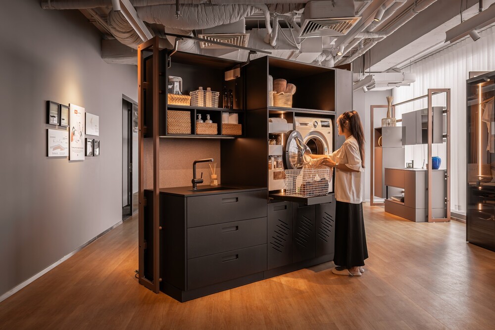 Điểm nhấn của không gian trải nghiệm nằm ở không gian trưng bày các giải pháp phụ kiện nội thất Product LIFE, nơi khách tham quan có thể trực tiếp khám phá các giải pháp của Blum được ứng dụng trong không gian sống thực tế từ phòng bếp, phòng tắm, phòng khách, phòng ngủ,… thông qua các hệ tủ nội thất.