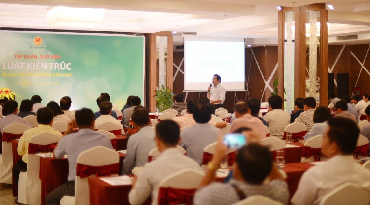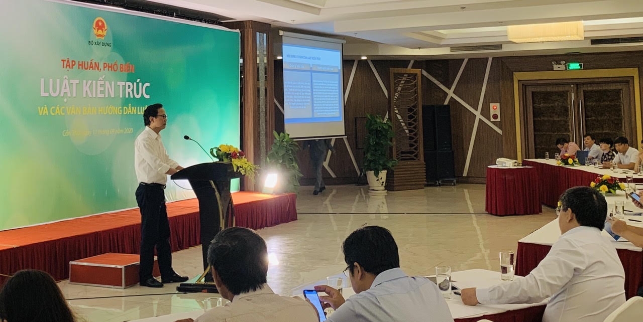 Ngày 11/9 tại Thành phố Cần Thơ, Bộ Xây dựng đã giao cho Vụ Quy hoạch Kiến trúc phối hợp với Viện Kiến trúc Quốc gia tổ chức Hội nghị tập huấn phố biến Luật Kiến trúc và các Nghị định liên quan. Tham dự Hội nghị có Thứ trưởng Bộ Xây dựng Nguyễn Đình Toàn; bà Trần Thu Hằng – Vụ trưởng Vụ Quy hoạch Kiến trúc cùng đại diện các Cục, Vụ, Viện thuộc Bộ Xây dựng; đại diện các Sở Xây dựng địa phương và các Hội Kiến trúc sư của các tỉnh, thành thuộc Đồng Bằng Sông Cửu Long…