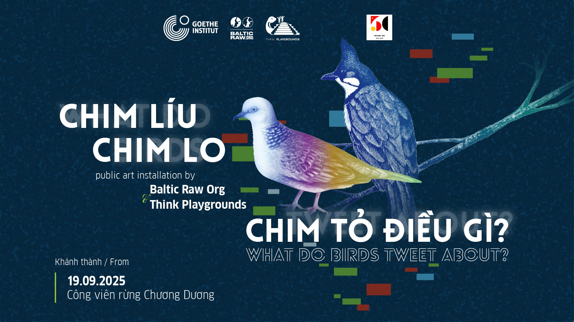 Từ ngày 19/9 tại Hà Nội và 27/9 tại TP. Hồ Chí Minh, dự án nghệ thuật công cộng “Chim líu, chim lo, chim tỏ điều gì?” sẽ chính thức ra mắt, mang đến trải nghiệm tương tác độc đáo giữa con người và thế giới loài chim ngay giữa lòng đô thị. Dự án do Viện Goethe Việt Nam khởi xướng, phối hợp thực hiện cùng hai tổ chức sáng tạo Think Playgrounds (Việt Nam) và Baltic Raw Org (Đức).