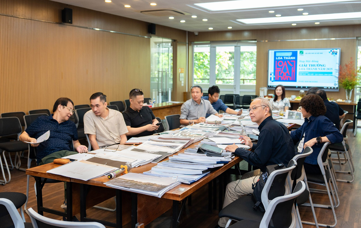 Hôm nay, ngày 08/10/2025, tại Trụ sở Hội KTS Việt Nam (40 Tăng Bạt Hổ, Hà Nội) đã diễn ra buổi chấm chọn tác phẩm xuất sắc Giải thưởng Loa Thành 2025, chuyên ngành Kiến trúc – Quy hoạch. Năm nay, các đồ án tham dự được Hội đồng giám khảo đánh giá cao về khả năng khai thác yếu tố bản địa.