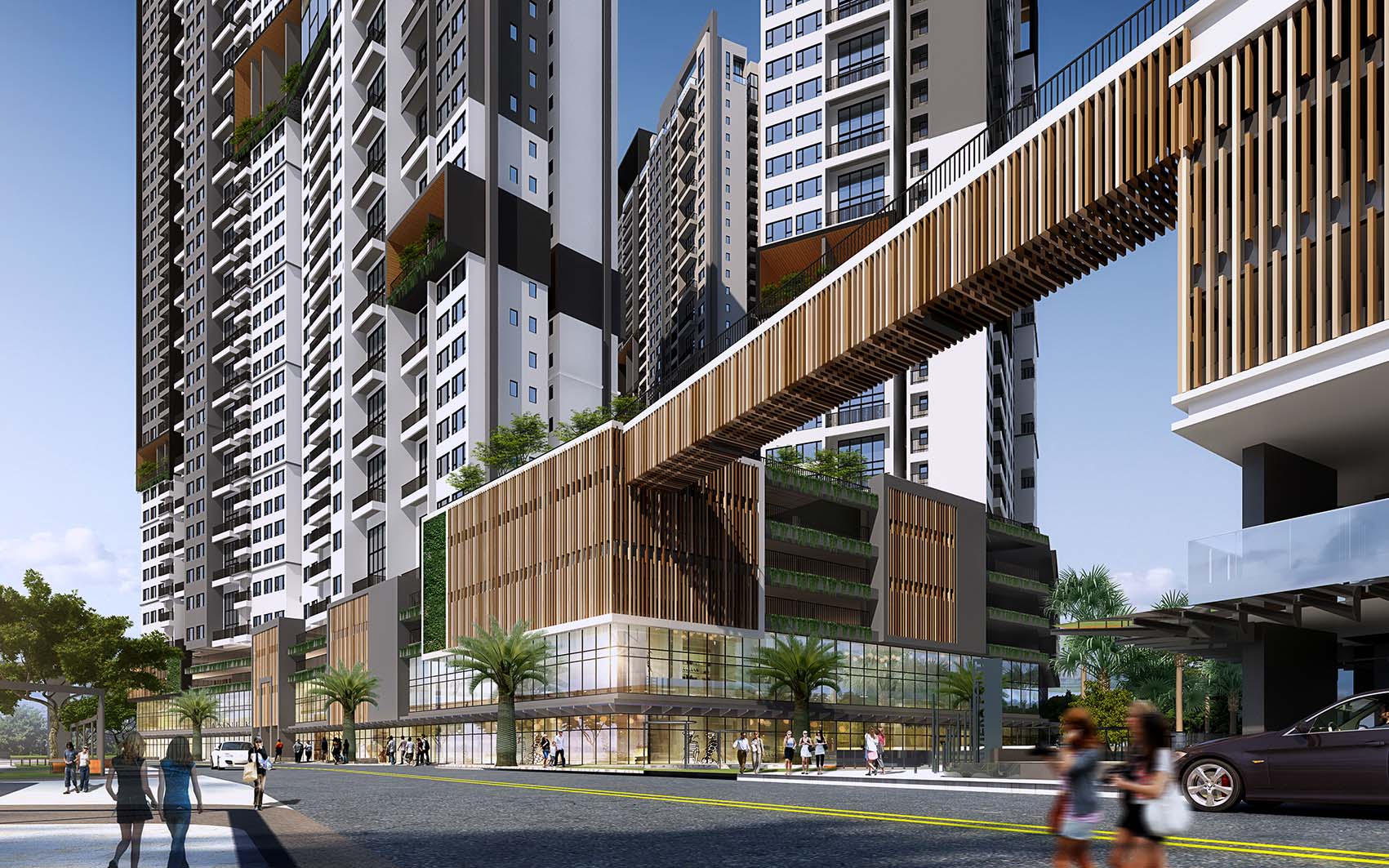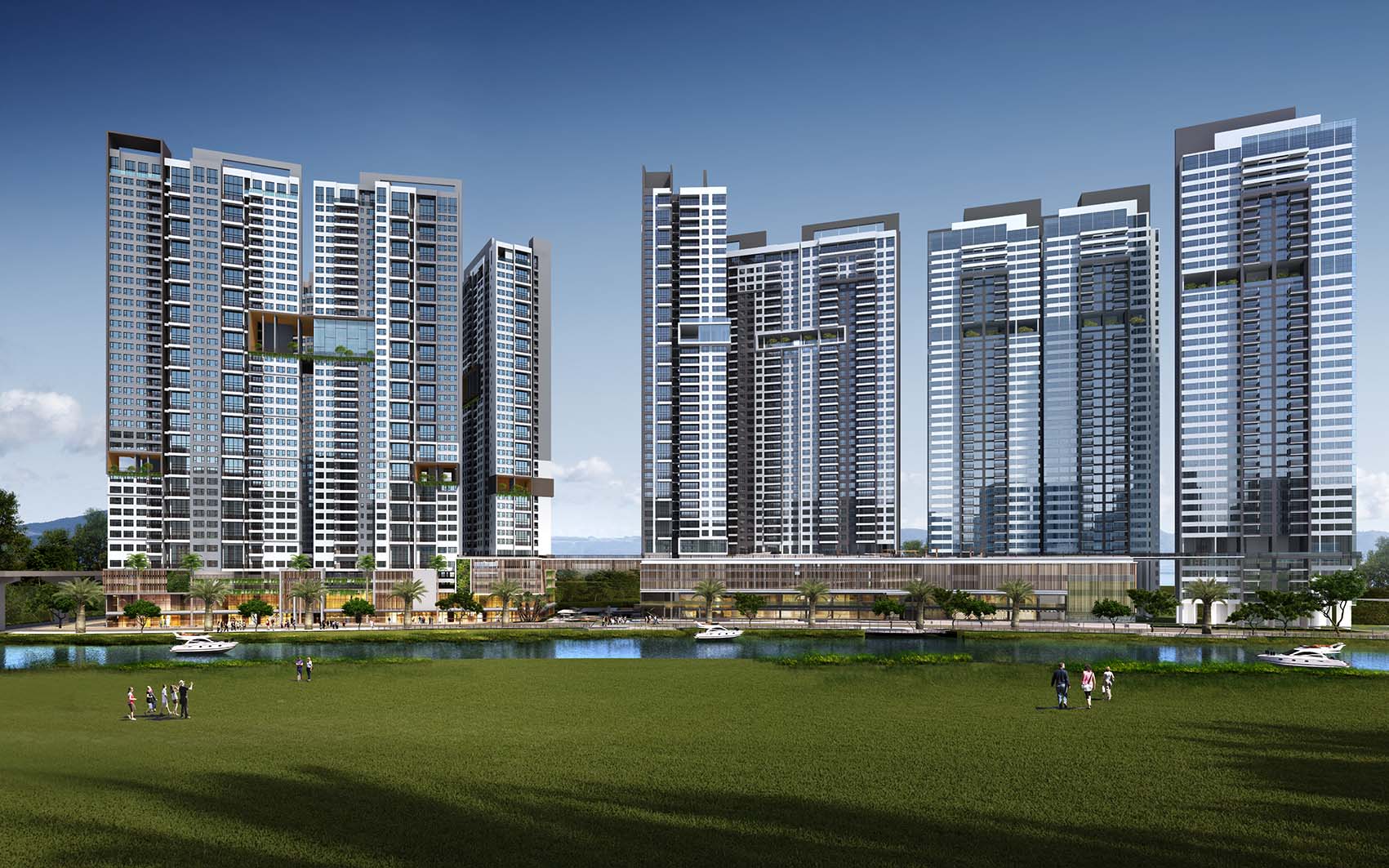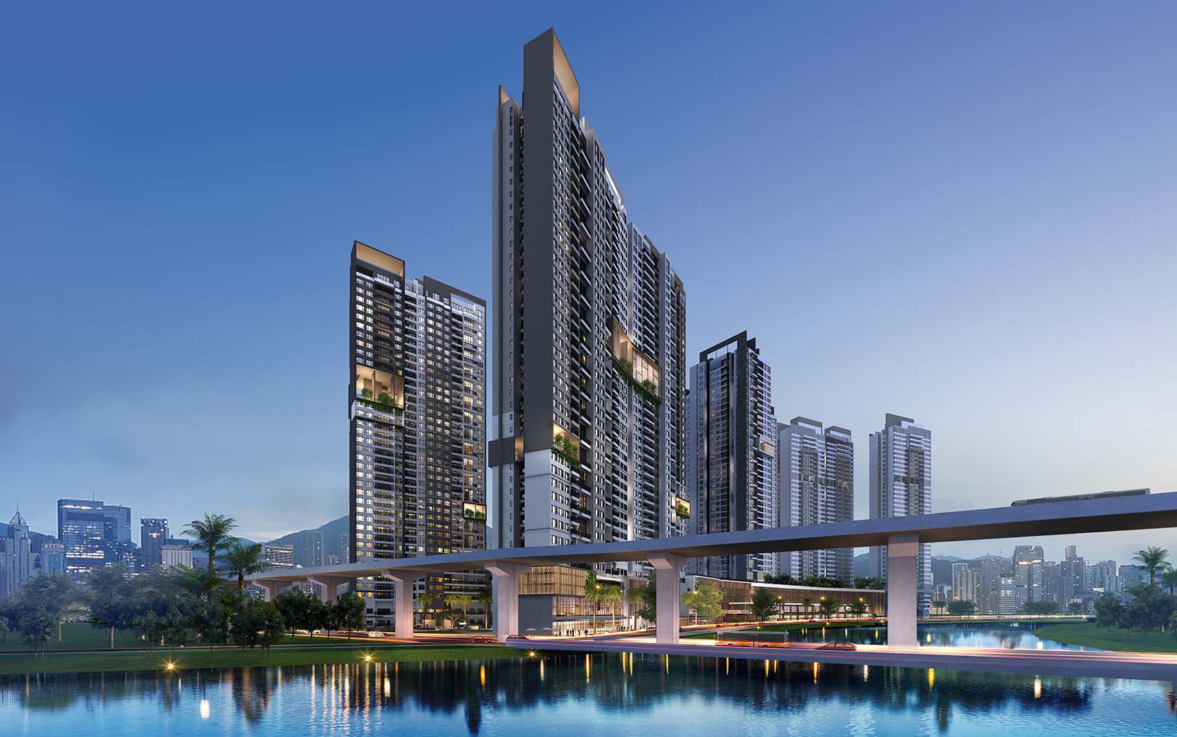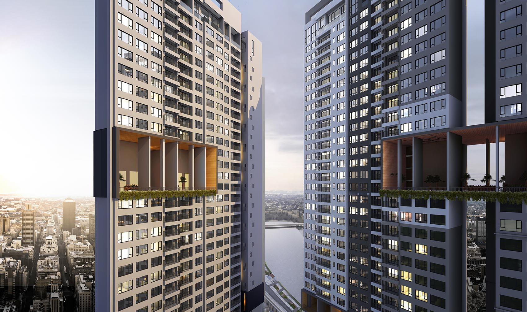 Các tòa tháp cao từ 38 – 40 tầng kết hợp những khu vườn treo được tạo ra ở nhiều tầng khác nhau như vườn Hawaii, vườn Zen, vườn Yoga, vườn thể dục, những khu vực thư giãn.