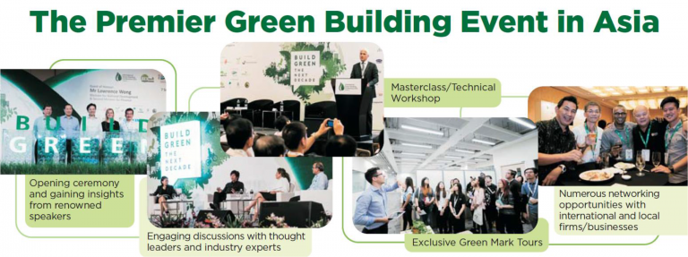 Hội nghị Xây dựng xanh Quốc tế (IGBC), một sự kiện quan trọng trong khuôn khổ Tuần lễ Xây dựng xanh Singapore (SGBW). Hội nghị đã thu hút hơn 80 nhà lãnh đạo tư tưởng, các quan chức chính phủ, nhà hoạch định chính sách và các ban ngành liên quan từ sinh viên đến các chuyên gia từ hơn 50 quốc gia vào năm 2016.