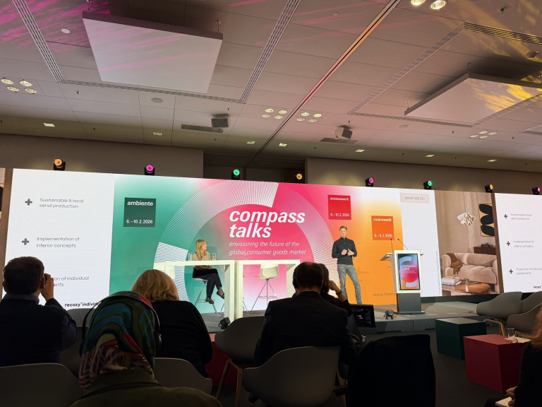 Chiều 5/2/2026, trước thềm khai mạc triển lãm Ambiente, Christmasworld và Creativeworld 2026, diễn đàn Compass Talks đã diễn ra tại trung tâm hội nghị Messe Frankfurt, mở đầu chuỗi sự kiện của ngành hàng tiêu dùng toàn cầu năm nay. Khác với không khí trưng bày quen thuộc của các hội chợ thương mại, Compass Talks được tổ chức như một không gian thảo luận tập trung, nơi các vấn đề lớn của thị trường được nhìn nhận thông qua dữ liệu, phân tích và đối thoại đa chiều.