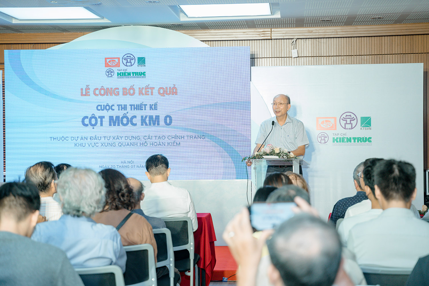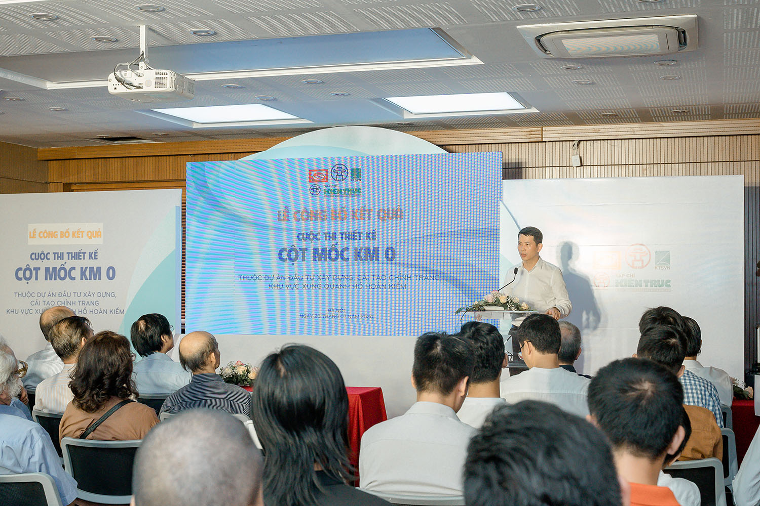 Ngày 20/ 7/ 2020 – Tại Trụ sở Hội Kiến trúc sư Việt Nam, 40 Tăng Bạt Hổ, quận Hai Bà Trưng, Hà Nội, đã diễn ra Lễ công bố kết quả Cuộc thi Thiết kế Công trình Cột mốc Km0 (Thuộc Dự án Đầu tư xây dựng, cải tạo chỉnh trang khu vực xung quanh Hồ Hoàn Kiếm) do UBND quận Hoàn Kiếm giao Tạp chí Kiến trúc – Hội Kiến trúc sư Việt Nam tổ chức với sự bảo trợ của Hội Mỹ thuật Việt Nam, Hội Kiến trúc sư Việt Nam. Là sự “gặp gỡ” giữa giới mỹ thuật và kiến trúc, cuộc thi đã nhận được sự tham gia hưởng ứng nhiệt tình của các tác giả là KTS, họa sĩ, nhà điêu khắc, sinh viên chuyên ngành kiến trúc – mỹ thuật trên toàn quốc.