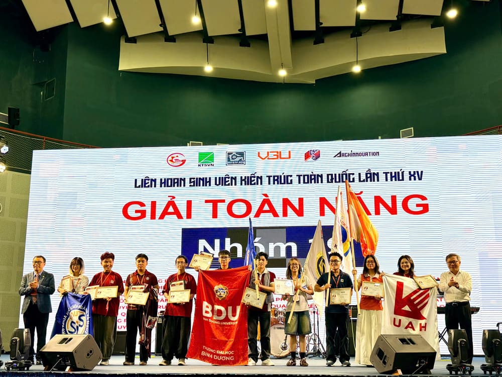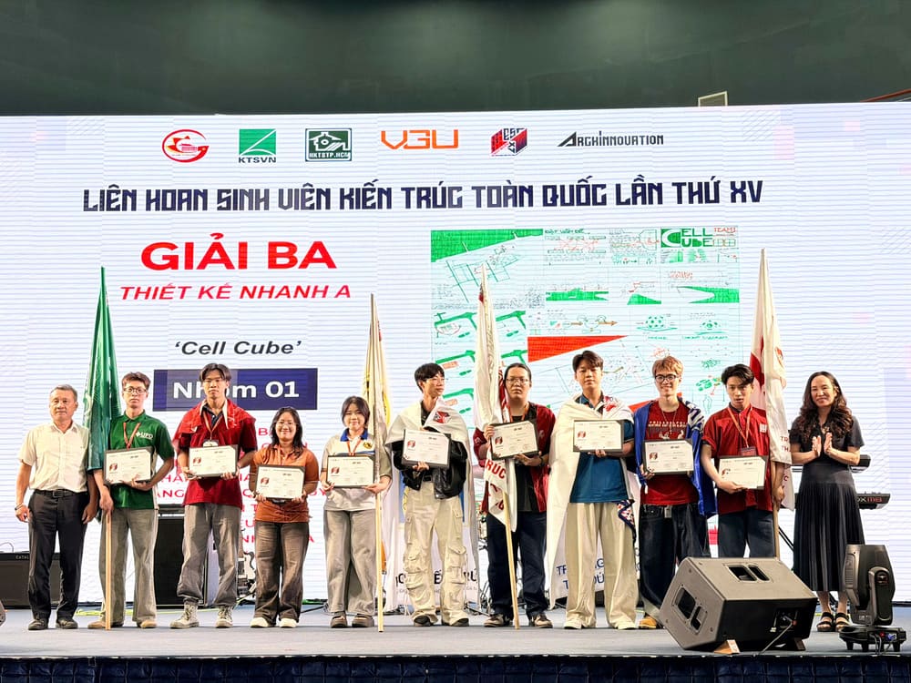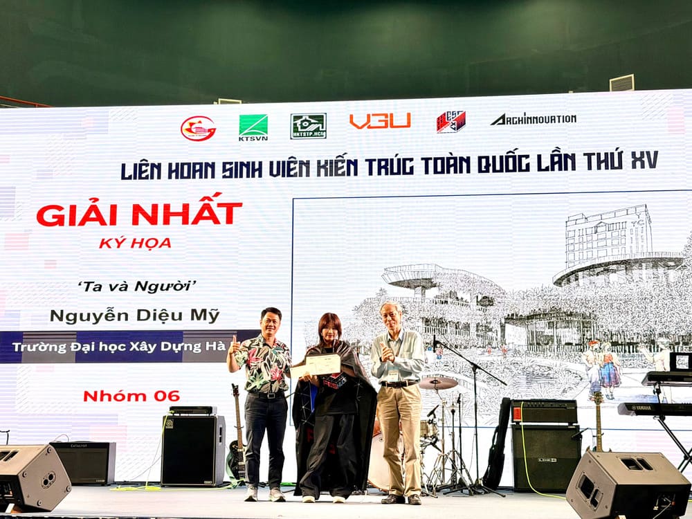 Sau nhiều ngày tranh tài sôi nổi, các cuộc thi chuyên môn đã khép lại với nhiều kết quả nổi bật, phản ánh rõ nét năng lực sáng tạo và tinh thần làm việc liên ngành của sinh viên kiến trúc. Trong Lễ Bế mạc, những cái tên xuất sắc đã được vinh danh trong từng hạng mục: