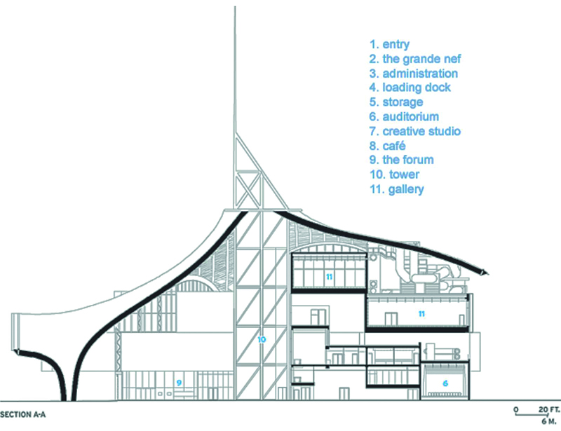 - Công trình khu phức hợp nhà hát: Do yêu cầu phải xây dựng một biểu tượng thì ông đã tìm một hình tượng là cánh buồm thường thì cánh buồm sẽ kết nối với gió nhưng bảo tàng này thì cánh buồm kết nối với ánh sáng tạo ra một khán phòng có sức chứa 4000 người