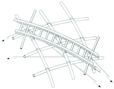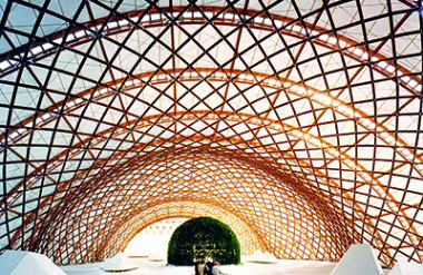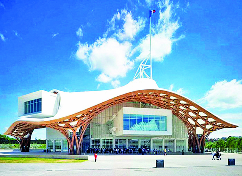 - Trung tâm Pompidou Metz, Lorraine, Pháp: Đây là một bảo tàng nghệ thuật đương đại. Công trình này được tạo nên bởi hai ý tưởng: Ý tưởng mặt bằng mái từ bản đồ nước Pháp là hình đa giác sáu cạnh; ý tưởng từ cấu trúc chiếc nón lá của người Trung Quốc đã tạo ra hệ giàn bao phủ mềm mại cho công trình. Shigeru Ban cũng sử dụng cột trung tâm chính là thang máy ở giữa để tạo ra một biểu tượng rất mạnh cho công trình. Tháp thang máy này là hình chóp nhọn của chiếc nón lá và nó cũng đồng thời tạo ra một cấu trúc treo lơ lửng, có tạo hình đặc biệt.