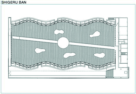 - Bảo tàng Nhật: Sử dụng hệ thống cửa gấp đôi tạo thành vách ngăn di động để đưa ánh sáng vào khu lễ tân, Shigeru Ban đã biến bảo tàng đóng trở thành bảo tàng mở, vật liệu gỗ được sắp xếp theo hình tre.