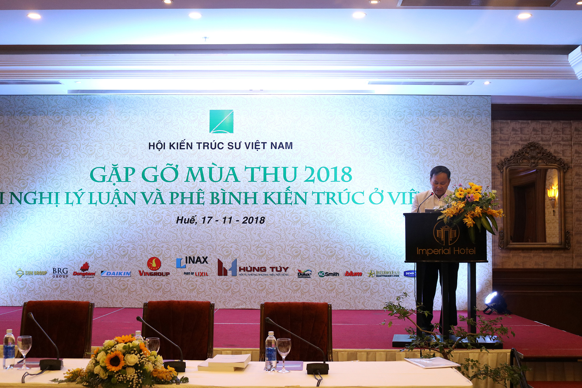 Ngày 17/11 vừa qua, tại TP Huế, Hội Kiến trúc sư Việt Nam đã tổ chức chương trình “Gặp gỡ mùa thu 2018” với hội nghị “Lý luận và phê bình kiến trúc ở Việt Nam” với sự tham dự của Ông Phạm Hồng Hà – Ủy viên Trung ương Đảng, Bộ trưởng Bộ Xây dựng ; Ông Nguyễn Đình Toàn – Thứ trưởng Bộ Xây dựng; Ông Phan Ngọc Thọ – Phó bí thư Tỉnh ủy, Chủ tịch UBND tỉnh Thừa Thiên Huế – ; KTS Nguyễn Tấn Vạn – Chủ tịch Hội KTS Việt Nam; Nhà thơ Hữu Thỉnh – Chủ tịch Liên hiệp các Hội Văn học – Nghệ thuật Việt Nam; và đại diện lãnh đạo các bộ, ban, ngành và Hội Trung ương cùng hơn 300 KTS tiêu biểu đại diện cho hàng vạn KTS trên cả nước.