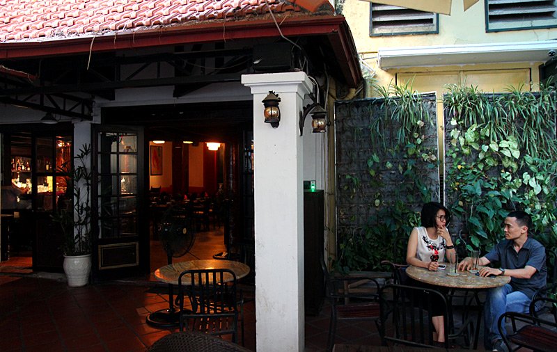 Có người chọn cách nhâm nhi tách trà và nhìn ngắm không gian cổ kính đậm nét Hà Nội xưa.