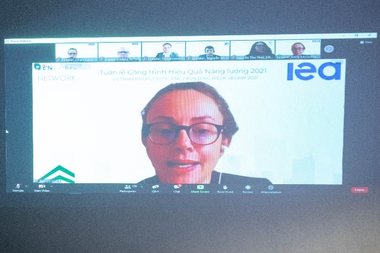 TS Emily McQualter, Nhà phân tích chính sách tiết kiệm năng lượng tại Cơ quan Năng lượng quốc tế (IEA) phát biểu khai mạc: “Theo nghiên cứu của chúng tôi về triển vọng năng lượng, múc độ tiêu thụ năng lượng từ 2017-2040 sẽ tăng trưởng đáng kể. Việc sử dụng năng lượng hiệu quả hơn trong công trình, giảm phụ thuộc vào năng lượng hoá thạch và cải thiện chất lượng không khí là những yêu tố quan trọng mà toàn xã hội cần tập trung vào. Đồng thời, các khung chính sách cũng cần được thúc đẩy để chúng ta phát huy hơn nữa các tiềm năng đạt được mục tiêu này.”