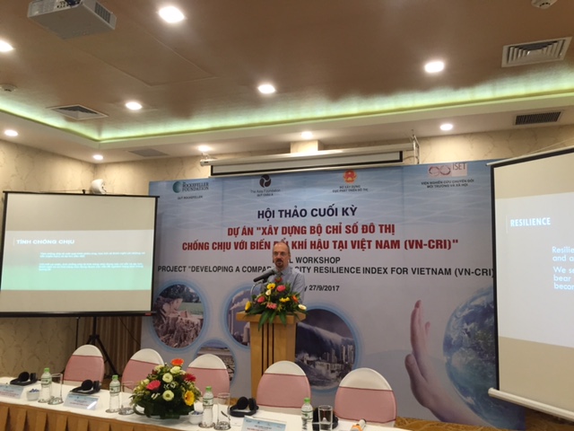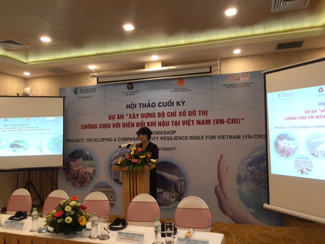 Ngày 27/9/2017, tại Hà Nội, Cục Phát triển đô thị (Bộ Xây dựng) kết hợp Quỹ Châu Á (TAF), Viện Nghiên cứu chuyển đổi Môi trường và Xã hội (ISET) tổ chức Hội thảo cuối kỳ Dự án “Xây dựng Bộ chỉ số đô thị chống chịu với Biến đổi khí hậu tại Việt Nam (VN – CRI)”. Đến tham dự Hội thảo có đại diện các bộ ngành Trung ương, UBND Thành phố và Sở Xây dựng các tỉnh, các Hiệp hội, tổ chức trong nước và quốc tế.