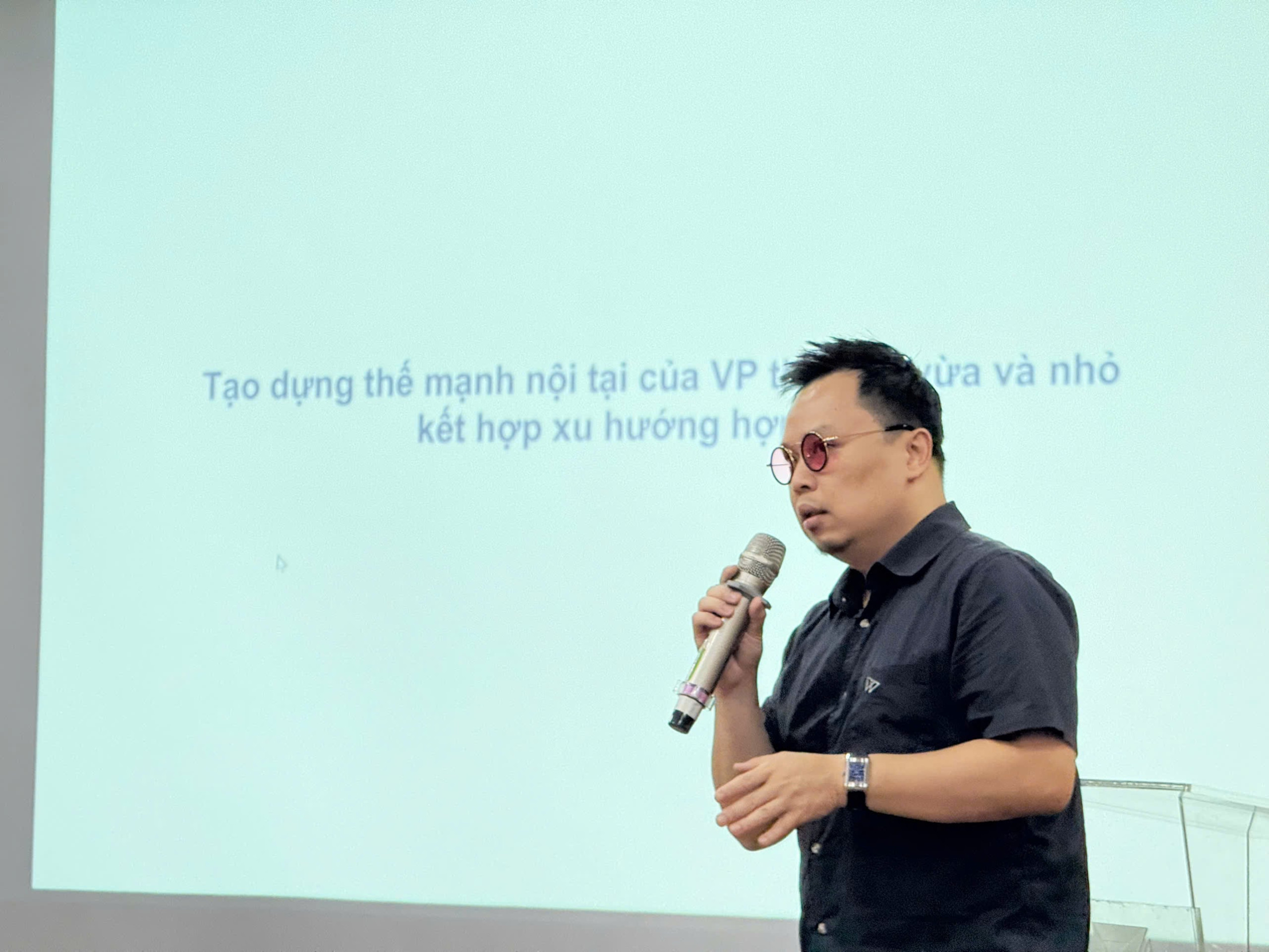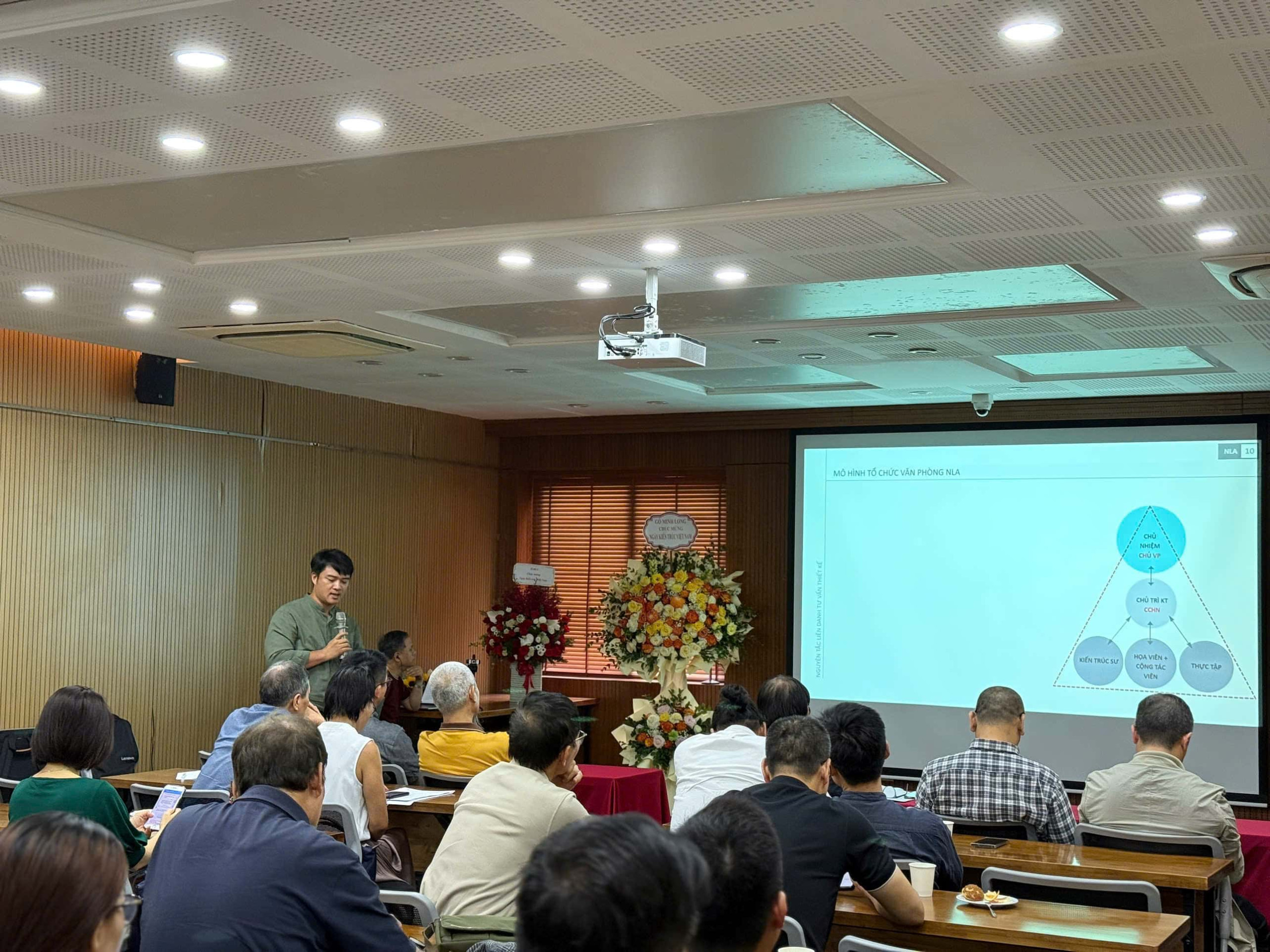 Diễn giả, KTS Ngô Ngọc Lê nhấn mạnh tầm quan trọng của việc nhận thức đúng vai trò trong hành nghề kiến trúc – không chỉ với cá nhân người kiến trúc sư, mà còn với các tổ chức xã hội nghề nghiệp. Với ông, sự khác biệt lớn nhất giữa một văn phòng kiến trúc thành công và thất bại nằm ở sự kiên trì và khả năng xây dựng môi trường hành nghề bền vững. Môi trường đó phải cho phép các đơn vị nhìn thấy được giá trị liên kết – không chỉ hợp tác hời hợt, mà là liên danh chiến lược, dựa trên sự tin tưởng và hiểu rõ năng lực của nhau.