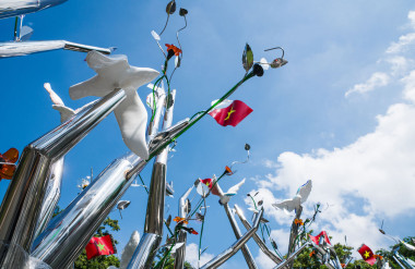 Hà Nội, tháng 10 năm 2025, tại Vườn hoa 19/8, nơi gắn liền với sự kiện Tổng khởi nghĩa lịch sử của dân tộc cách đây 80 năm, nghệ sĩ Tia-Thủy Nguyễn sẽ chính thức ra mắt tác phẩm nghệ thuật công cộng mới mang tên “Kết Đoàn”, một hình tượng kết hợp giữa điêu khắc kim loại, thủ công truyền thống, ánh sáng và âm thanh, như một lời tri ân với ký ức lịch sử, đồng thời mở ra cuộc đối thoại mới giữa nghệ thuật đương đại và tinh thần Việt Nam.