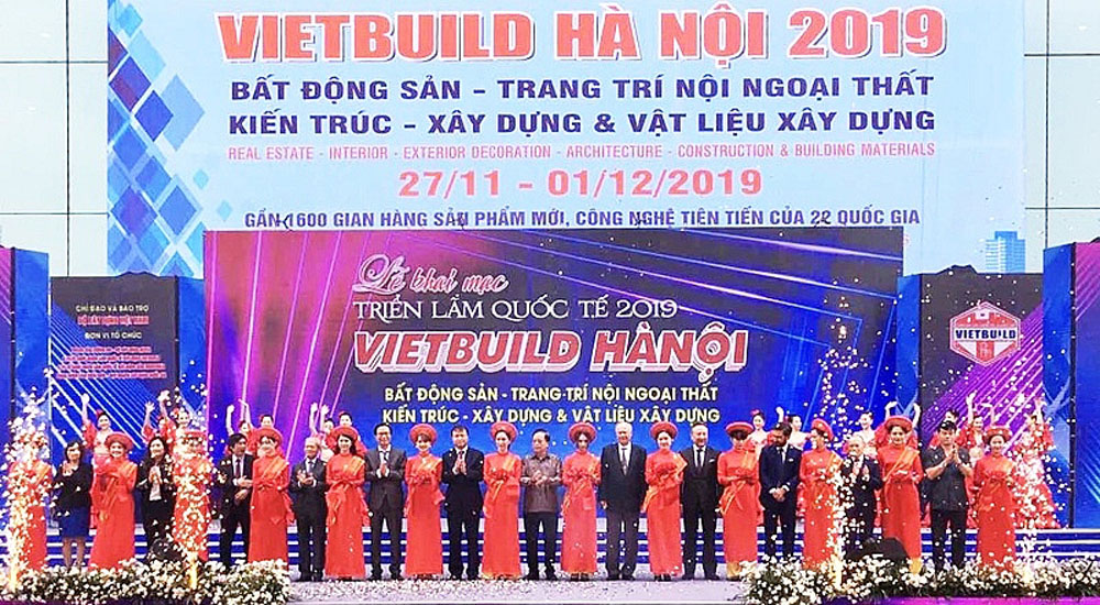 Sáng 27/11, Triển lãm quốc tế Vietbuild Hà Nội 2019 với chủ đề “Bất động sản, trang trí nội ngoại thất, kiến trúc, xây dựng và vật liệu xây dựng” chính thức khai mạc tại Cung triển lãm kiến trúc – quy hoạch xây dựng quốc gia.