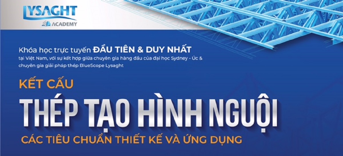 Tháng 7 tới đây, NS BlueScope Lysaght Việt Nam phối hợp cùng chuyên gia hàng đầu tại đại học Sydney tổ chức khóa học trực tuyến miễn phí “Kết cấu thép tạo hình nguội – các tiêu chuẩn thiết kế và ứng dụng” dành cho các kỹ sư, tư vấn thiết kế và các bạn sinh viên năm cuối ngành kiến trúc, kỹ sư xây dựng, kỹ thuật xây dựng. Đây là khóa học đầu tiên về thép tạo hình nguội được tổ chức tại Việt Nam.