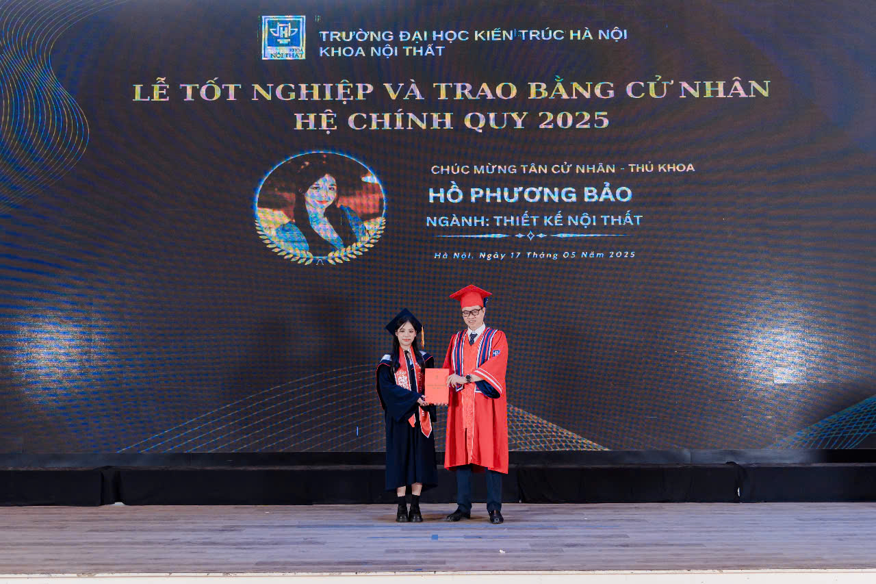 Sáng ngày 17/5, tại Nhà thi đấu Trường Đại học Kiến trúc Hà Nội, Khoa Nội thất đã tổ chức Lễ trao bằng tốt nghiệp cho 295 sinh viên khóa 2020NT. Buổi lễ đánh dấu bước chuyển quan trọng từ giảng đường đến con đường nghề nghiệp của các tân cử nhân, kết thúc hành trình học tập kéo dài 5 năm với nhiều nỗ lực và sáng tạo.