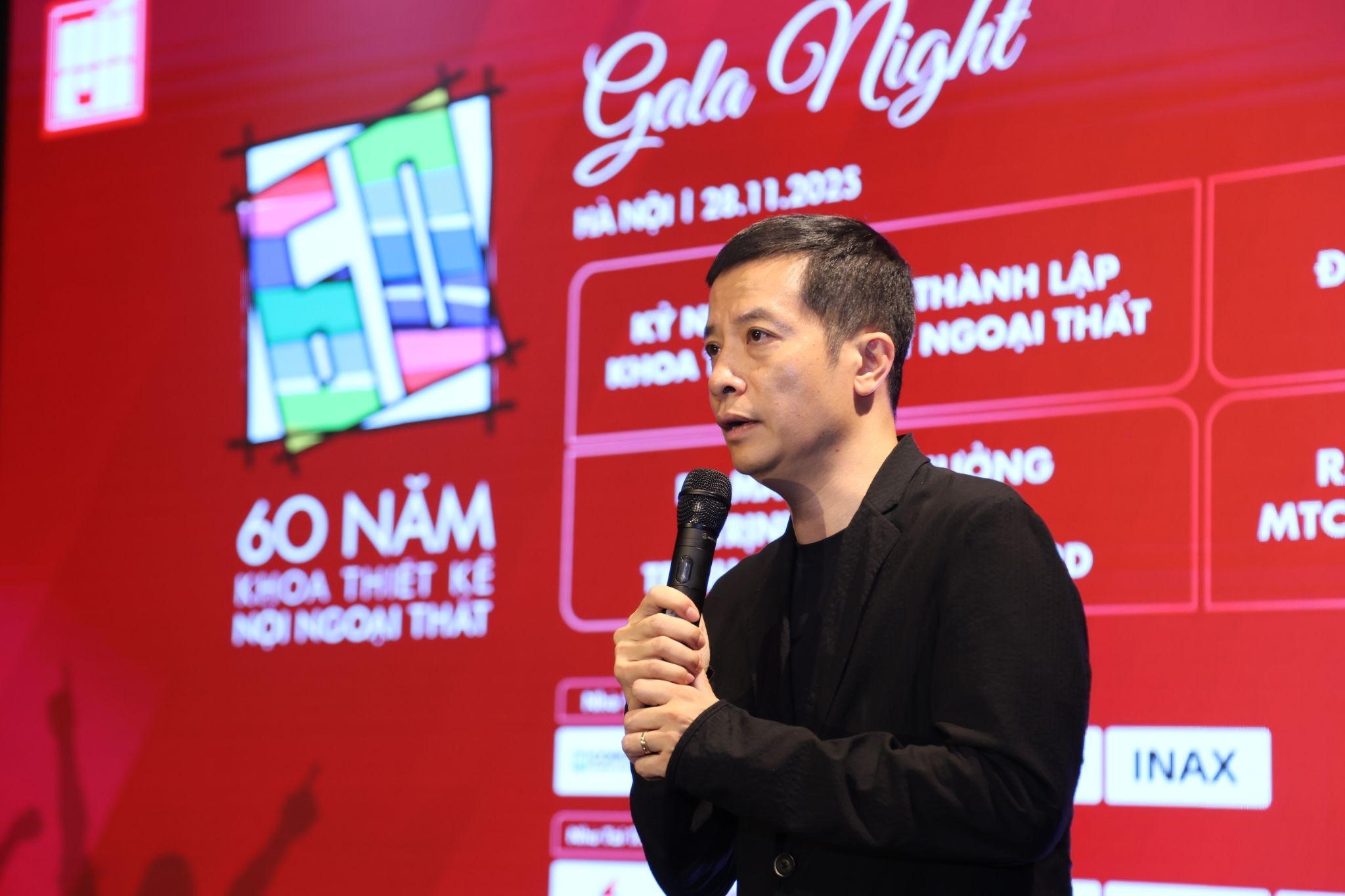 Mở đầu chương trình là phần phát biểu khai mạc của TS. NTK Lưu Việt Thắng – Trưởng Khoa Thiết kế Nội Ngoại thất để hội trường cùng nhìn lại 60 năm phát triển của Khoa, nhấn mạnh những giá trị cốt lõi mà Khoa đã xây dựng, không chỉ trong việc đào tạo chuyên môn mà còn trong việc hình thành tư duy thẩm mỹ, trách nhiệm nghề nghiệp và bản lĩnh sáng tạo cho hàng chục nghìn sinh viên.