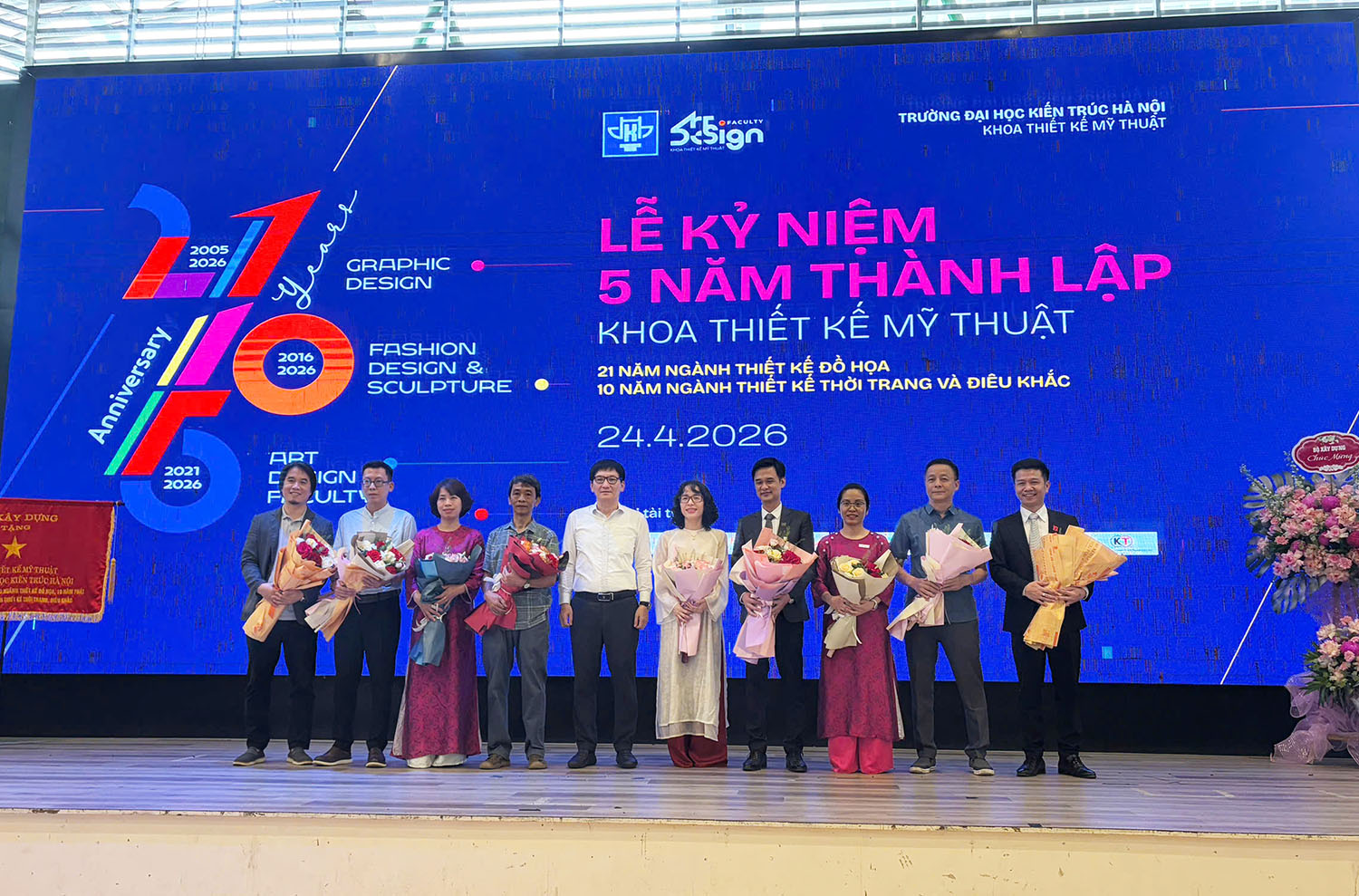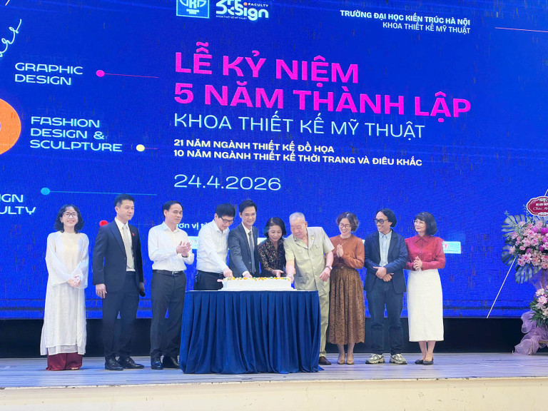 Ngày 24/04/2026, Khoa Thiết kế Mỹ thuật – Trường Đại học Kiến trúc Hà Nội long trọng tổ chức chuỗi hoạt động kỷ niệm 5 năm thành lập, đồng thời đánh dấu 10 năm đào tạo hai ngành Thiết kế Thời trang và Điêu khắc. Sự kiện là dịp nhìn lại hành trình hình thành và phát triển, khẳng định vai trò của Khoa trong lĩnh vực đào tạo mỹ thuật ứng dụng, cũng như mở rộng kết nối với cộng đồng sáng tạo.
