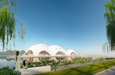 Điểm nhấn độc đáo của công trình là mái vòm “vô tiền khoáng hậu”, lấy cảm hứng từ những viên ngọc trai nổi trên mặt nước Hồ Tây. Kết cấu siêu mỏng và lớp phủ hiệu ứng ngọc trai giúp công trình phản chiếu màu nước và ánh sáng theo thời gian – biểu tượng cho sự giao hòa giữa tự nhiên, nghệ thuật và tâm hồn Hà Nội.