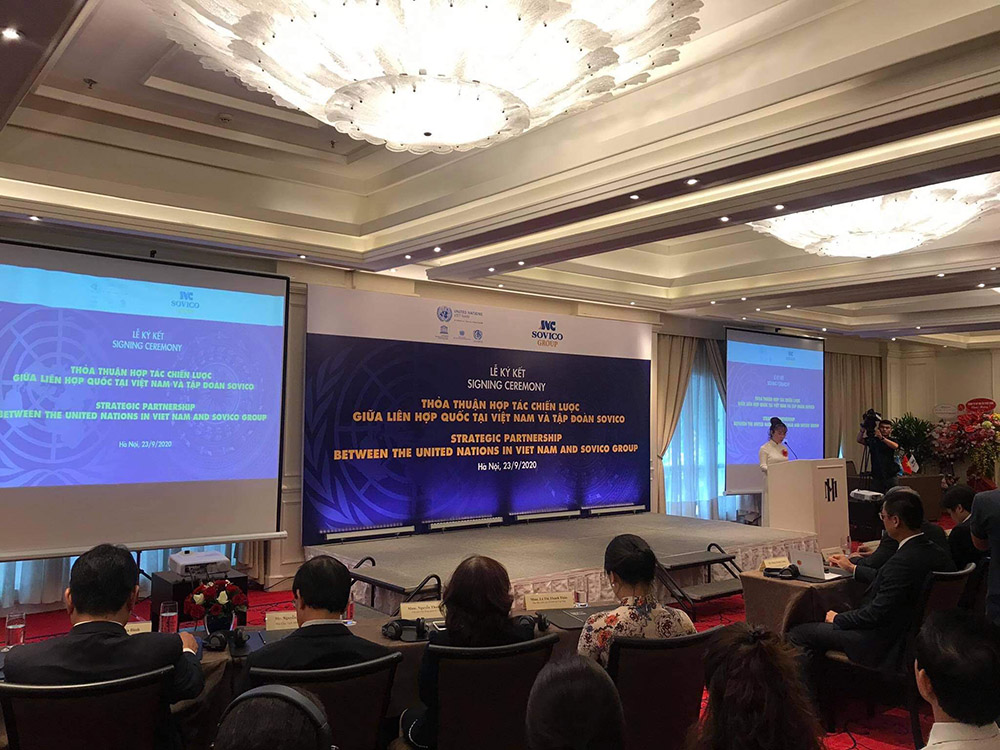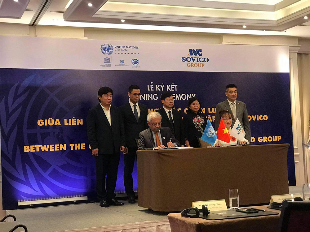 Được chứng kiến bởi các đại điện chính phủ, TP Hà Nội và các đối tác quan trọng, sự hợp tác giữa LHQ và Tập đoàn SOVICO thể hiện vai trò quan trọng của các doanh nghiệp tư nhân, góp phần kết nối những sáng kiến mới nhằm hỗ trợ cho sự phát triển bền vững và giúp Việt Nam thực hiện các mục tiêu trong Thập kỷ Hành động vì mục tiêu phát triển bền vững.
