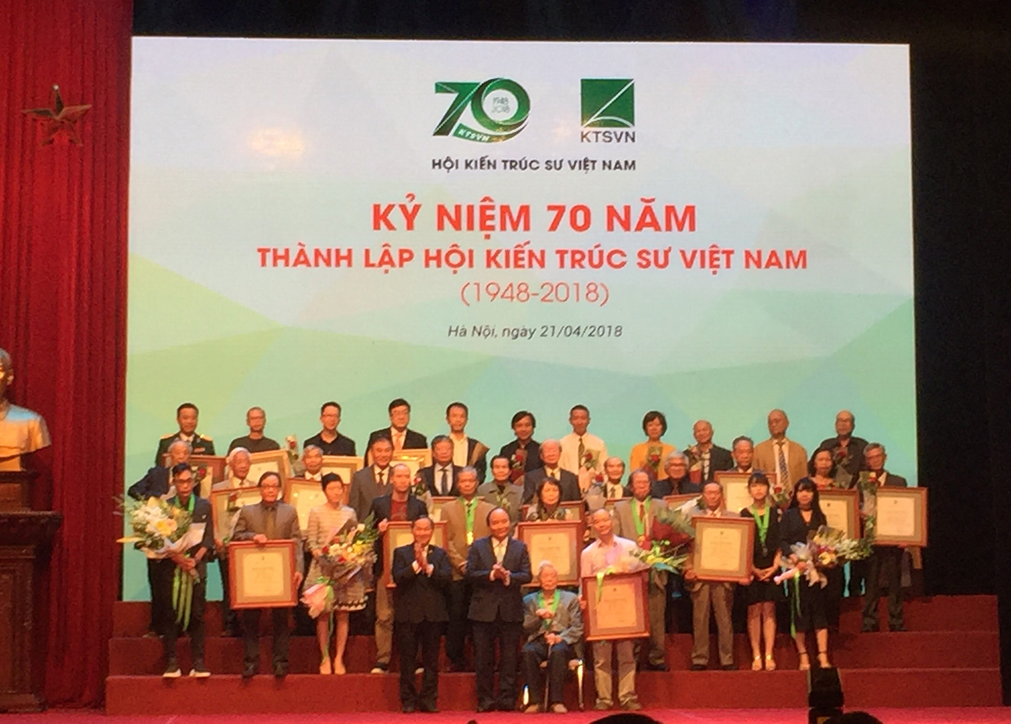 Phát biểu tại buổi lễ, thủ tướng Nguyễn Xuân Phúc cho rằng: Trải qua 70 năm xây dựng và phát triển, Hội KTS Việt Nam đang không ngừng trưởng thành lớn mạnh, có nhiều đóng góp quan trọng vào sự nghiệp xây dựng và bảo vệ Tổ quốc. Các thế hệ hội viên Hội KTS dù trong bất cứ hoàn cảnh nào luôn sáng tạo, cần cù lao động để đóng góp tài năng, trí tuệ cho sự phát triển của đất nước Việt Nam hiện đại, mang đậm bản sắc văn hóa, dân tộc. Những công trình kiến trúc quan trọng, trọng điểm quốc gia trong những năm qua đều mang dấu ấn bàn tay, khối óc của những kiến trúc sư tài ba. Những công trình, tác phẩm kiến trúc có giá trị này đã tạo dấu ấn, làm giàu thêm cho nền kiến trúc, thể hiện đóng góp quan trọng của giới KTS, của Hội KTS và ngành Xây dựng Việt Nam. Thủ tướng mong muốn, trong bối cảnh xu thế kiến trúc xanh, đô thị xanh, đô thị thông minh là hướng phát triển chủ đạo của thế giới trong thế kỷ XXI, Hội KTS và giới KTS Việt Nam đi tiên phong, định hướng cho kiến trúc Việt Nam xanh, sạch, đẹp, hiện đại, tiện nghi, tạo dựng không gian sống nhân văn, an toàn, bền vững, thân thiện với môi trường và xã hội cho nhân dân trước những bất ổn biến đổi về môi trường, thiên tai, biến đổi khí hậu trên phạm vi toàn cầu và nước ta là một trong những nước phải gánh chịu nhiều thiệt hại nhất. Nghiên cứu, thiết kế, tìm ra những kiến trúc phù hợp cho vùng nông thôn vừa rẻ, vừa sáng sủa, giản dị, những kiểu nhà sống chung với lũ… đáp ứng sự phát triển kinh tế – xã hội của từng địa phương cũng như cả nước. “Chúng ta phải tạo được những công trình kiến trúc để đời, mang tầm thế kỷ, mang lại lợi ích to lớn, lâu dài cho đất nước, cho thế hệ mai sau”.