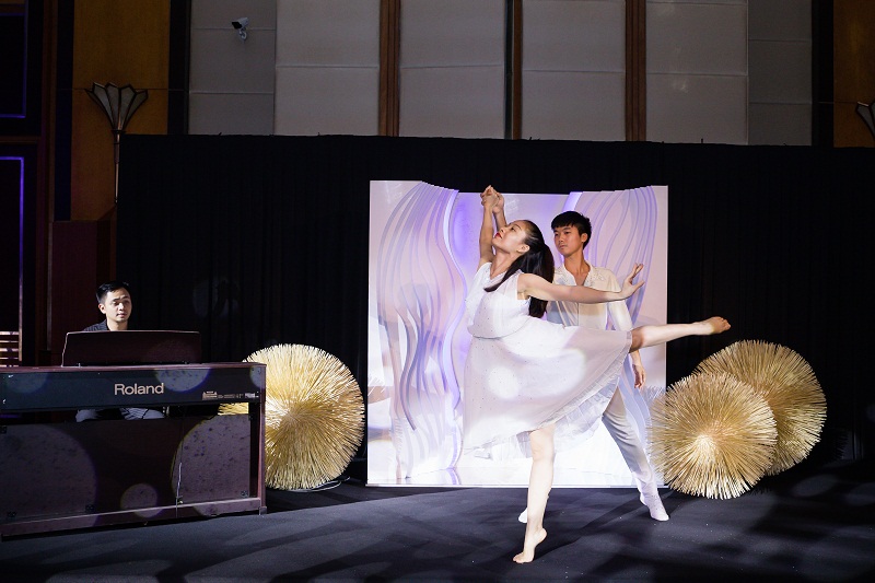 Tiết mục đàn piano kết hợp múa tương tác trên nền đá Statuariogợi cho người xem hình ảnh hiền hòa, êm mượt của con nước mùa đông, tuyết phủ trắng hai bên bờ. Bản thân thiết kế đá Statuario được VICOSTONE sáng tạo lấy cảm hứng từ những dòng sông băng tại quốc đảo Greenland.