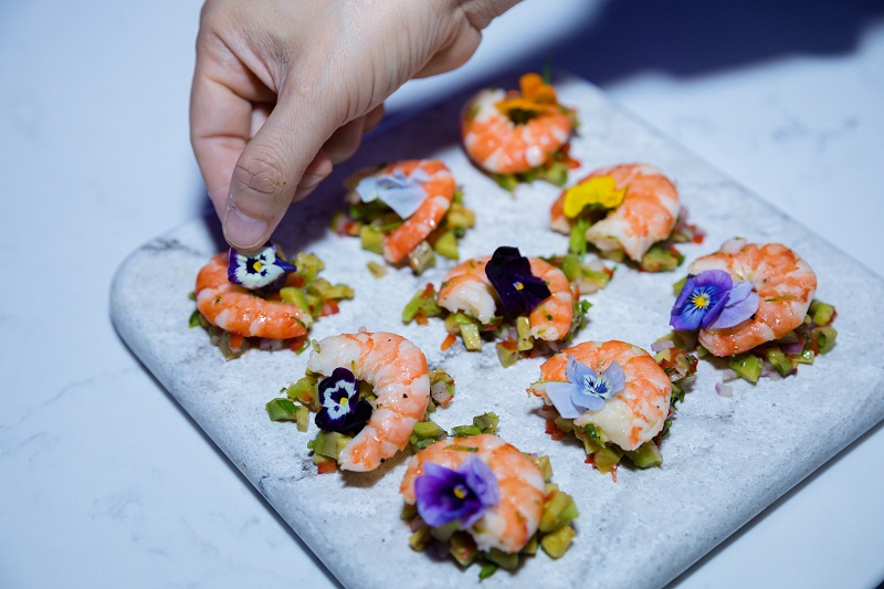 Các món ăn được đầu bếp trình diễn trên mặt bàn đá VICOSTONE lấy cảm hứng từ 3 yếu tố: Nước, Không khí và Ánh sáng. Không chỉ thể hiện vai trò gần gũi của kiến trúc trong đời sống mà còn cho thấy vẻ đẹp từ ẩm thực, kết hợp với ý tưởng sáng tạo trên mặt bàn bếp.