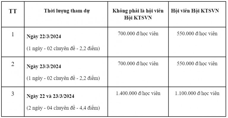 - Đăng ký tham dự theo mẫu, xin truy cập:www.chungchihanhnghekts.com (mục Đăng ký CPD).