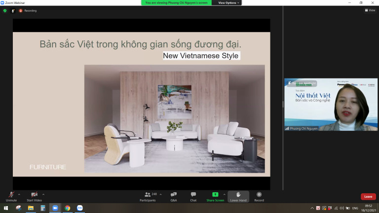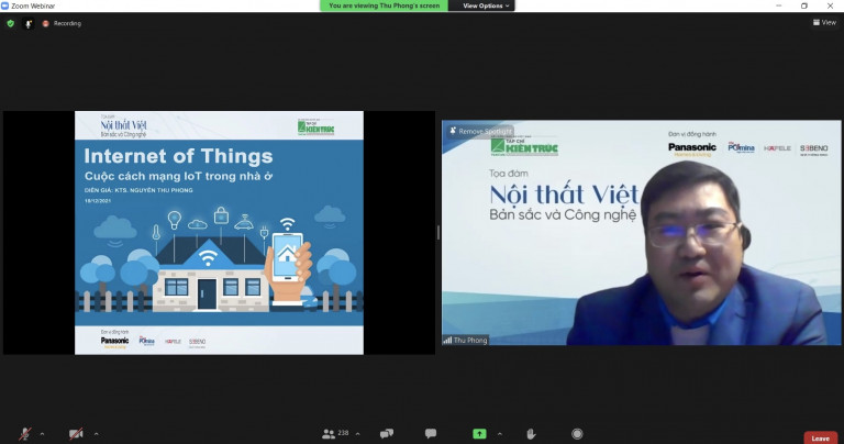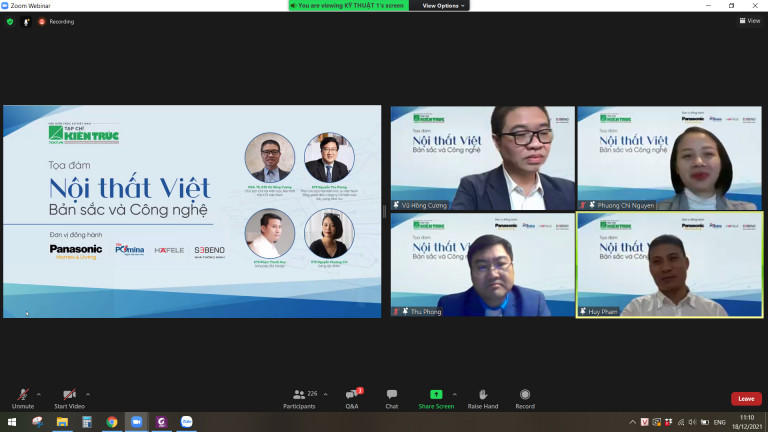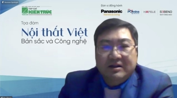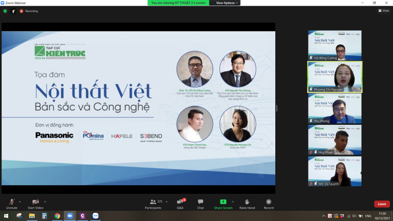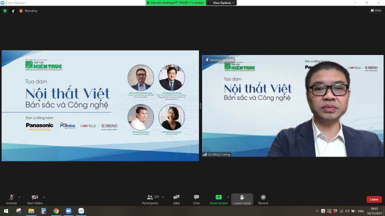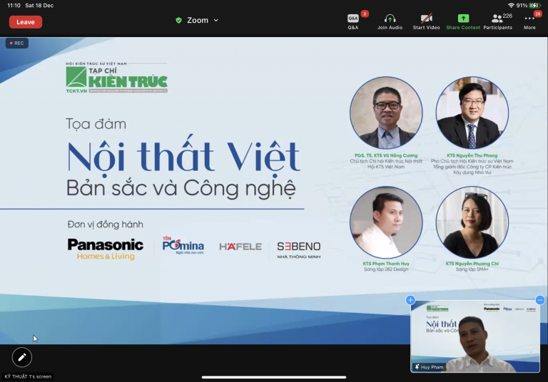 Nhằm tìm kiếm các quan điểm và giải pháp căn bản cho việc nâng cao chất lượng cuộc sống, hướng tới việc tạo lập phong cách nội thất Việt Nam hiện đại và giàu bản sắc, sáng ngày 18/12/2021 vừa qua, Tạp chí Kiến trúc – Hội KTS Việt Nam phối hợp với các đơn vị đồng hành: Nhãn hàng Quạt Trần Panasonic, Công ty TNHH Tôn Pomina, Công ty TNHH Hafele Việt Nam và Công ty Sebeno đã tổ chức Toạ đàm trực tuyến “Nội thất Việt: Bản sắc và công nghệ” trên nền tảng Zoom.
