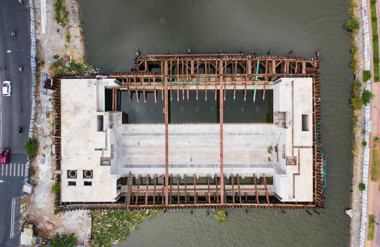 Hiện tại Cống Bến Nghé đang thi công kè mang cống, thảm đá gia công lòng sông và Nhà quản lý cống.