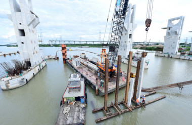 Cống Phú Xuân (huyện Nhà Bè, TP. HCM) đã đạt được 72%, trong đó đã hoàn thiện phần trụ pin và trụ tháp, hoàn thiện dầm van, gác dầm cầu công tác.