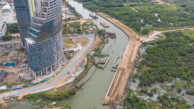 Hiện tại dự án chống ngập “siêu khổng lồ” này đã hoàn thành được 78% bao gồm 8 hạng mục trong đó có 6 cống ngăn triều, các đoạn đê kè và Nhà quản lý trung tâm. Dự án do Công ty TNHH Trung Nam BT 1547 thực hiện.