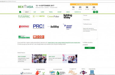 BEX Châu Á sẽ được diễn ra từ ngày 12-14 Tháng 9 năm 2017 tại Trung tâm triển lãm quốc tế và hội nghị Sands, là 1 trong các sự kiện chính của Tuần lễ Công trình Xanh Singapore (SGBW) 2017. Các sự kiện này sẽ là cần lái phát triển các tòa nhà xanh vững bền, dự kiến thu hút hơn 11,500 khách tham quan từ trên 55 quốc gia, bao gồm các chuyên gia xây dựng xanh, các chuyên gia ngành công nghiệp, đại diện các tổ chức chính phủ và cả những cá nhân bộ phận sử dụng không gian.