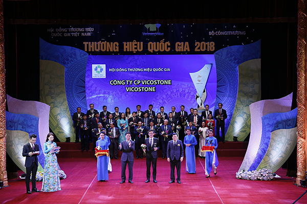 Thương hiệu Quốc gia (THQG) do Cục Xúc tiến thương mại – Bộ Công Thương tổ chức là Chương trình duy nhất của Chính phủ Việt Nam với mục đích quảng bá hình ảnh quốc gia, thương hiệu quốc gia Việt Nam thông qua các nhãn hàng trong nước. Quá trình sàng lọc và xét chọn, đánh giá được Ban Tổ chức tiến hành một cách khoa học, chặt chẽ và nghiêm túc theo quy trình 5 bước với nhiều tiêu chí khắt khe, trong đó năng lực lãnh đạo thương hiệu, năng lực sáng tạo và quản lý chất lượng là các tiêu chí trọng yếu. Năm 2018, 97 doanh nghiệp trong số 500 doanh nghiệp nộp hồ sơ đăng ký tham gia có sản phẩm đạt danh hiệu “Thương hiệu Quốc gia”. Với sự tin tưởng của khách hàng, chiến lược phát triển bền vững, năng lực lãnh đạo, định hướng phát triển một thương hiệu Việt uy tín, chất lượng và không ngừng sáng tạo trong hoạt động sản xuất kinh doanh, VICOSTONE lần đầu tiên tham gia chương trình và vinh dự đạt danh hiệu “Thương hiệu Quốc gia 2018”. Đây là sự ghi nhận cho những nỗ lực xây dựng và phát triển hình ảnh thương hiệu VICOSTONE với mục tiêu xây dựng và khẳng định chất lượng, uy tín và sức mạnh của một thương hiệu Việt trên thị trường nội địa và thị trường quốc tế.